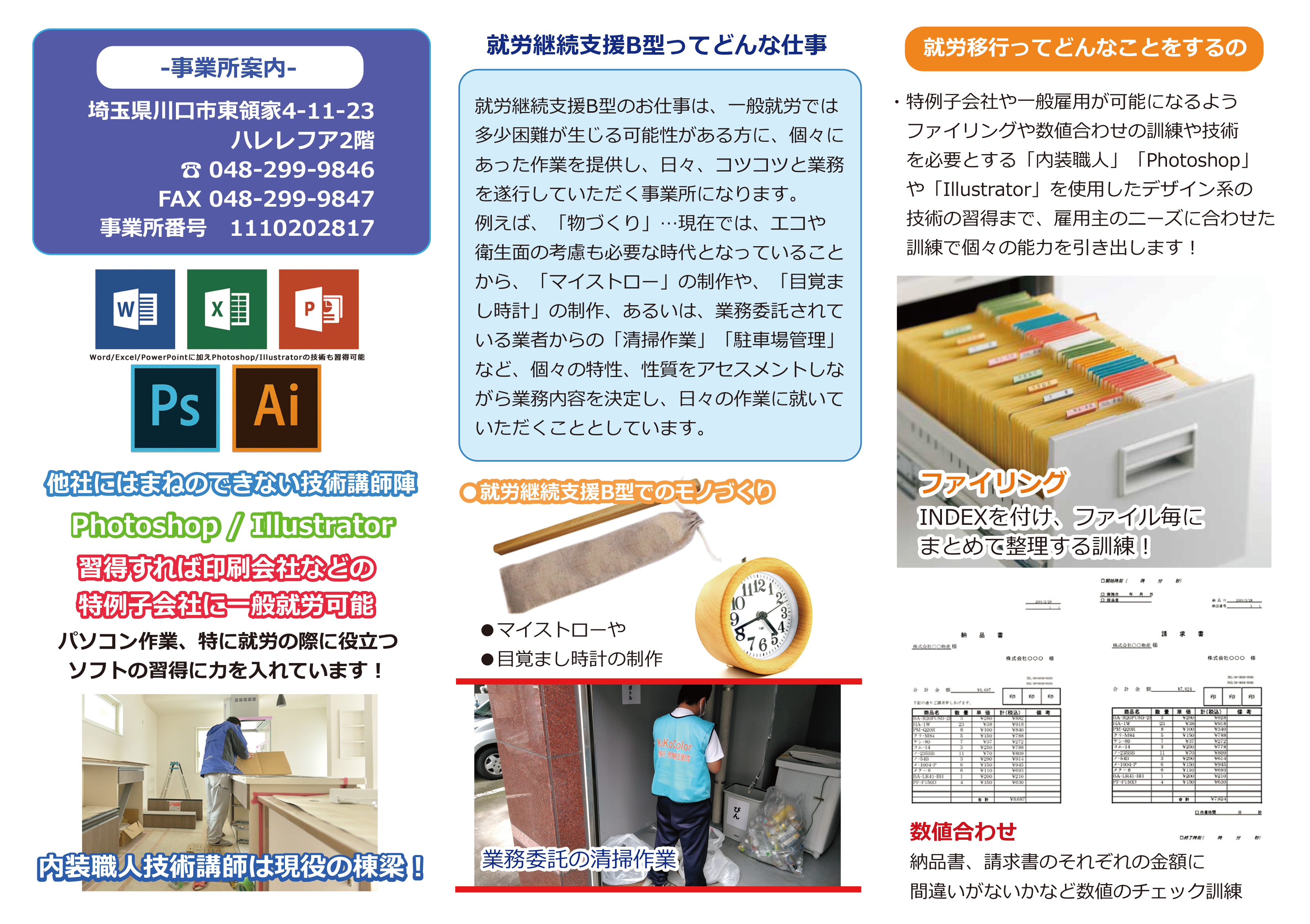 A. 室内で行う軽作業~提携されている委託先の清掃業務など様々なお仕事をご用意しています。